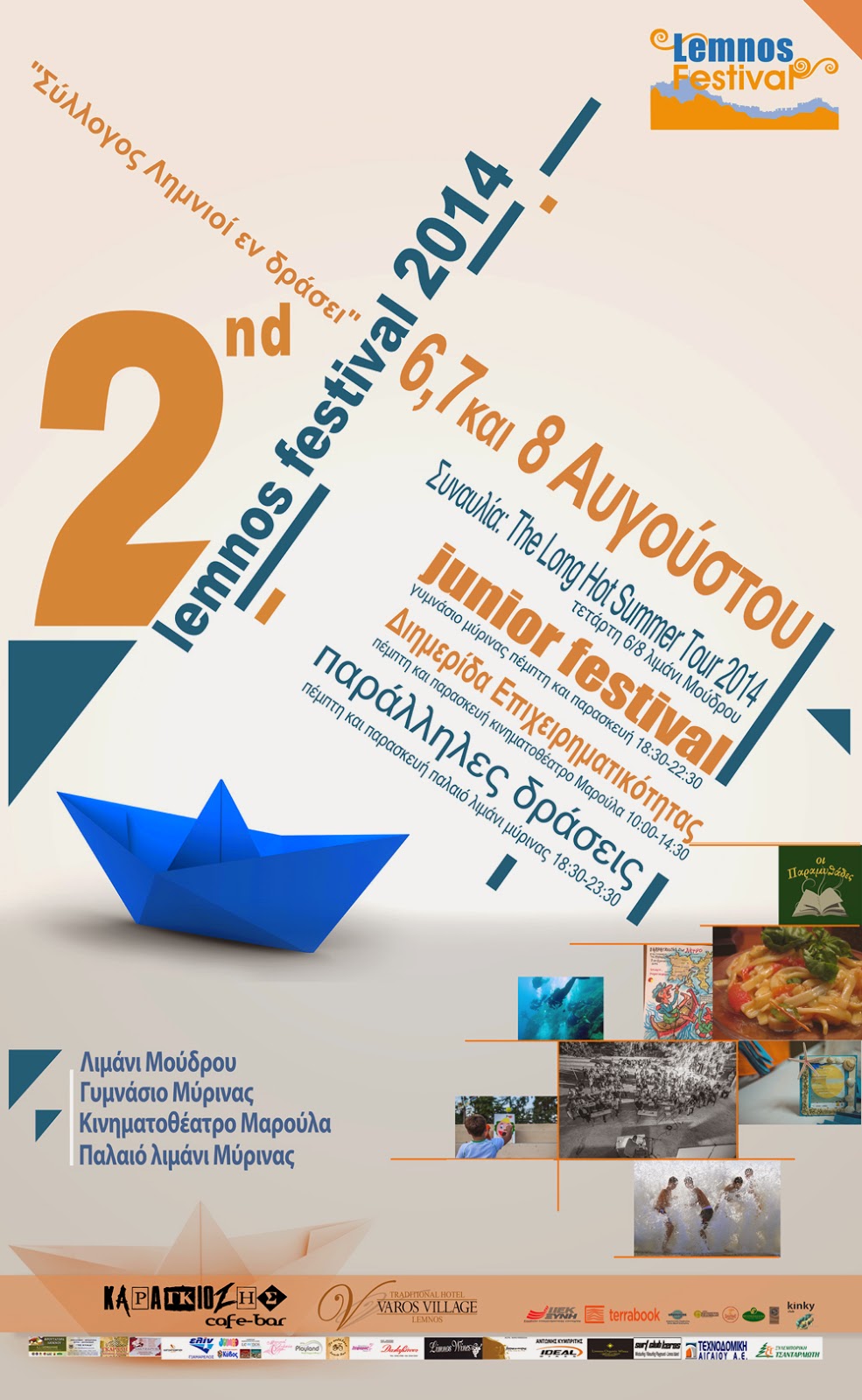 αποδήμων και φίλων της Λήμνου «Λημνιοί εν δράσει», διοργανώνει το Lemnos Festival 2014 (http://festival.lemnosinaction.com), με την τεχνική υποστήριξη του