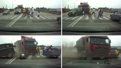 Βίντεο-σοκ: Φορτηγό βγαίνει στο αντίθετο ρεύμα και πέφτει επάνω σε πεζούς! [video]