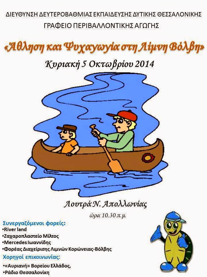 ''Άθληση και Ψυχαγωγία στη φύση - στη Λίμνη Βόλβη '', Κυριακή 5 Οκτωβρίου, 10.30 πμ, Λουτρά Ν. Απολλωνίας- Γραφείο Περιβαλλοντικής Εκπαίδευσης Δ.Δ.Ε. Θεσσαλονίκης