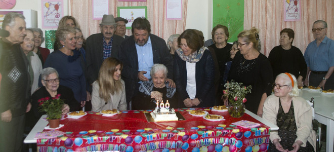 «Είμαι πολύ χαρούμενη, είναι μια όμορφη μέρα» έλεγε και ξαναέλεγε η αιωνόβια γυναίκα την ώρα που οι παρευρισκόμενοι την αγκάλιαζαν και της εύχονταν υγεία και περαιτέρω ευτυχία με αφορμή τα γενέθλια της.