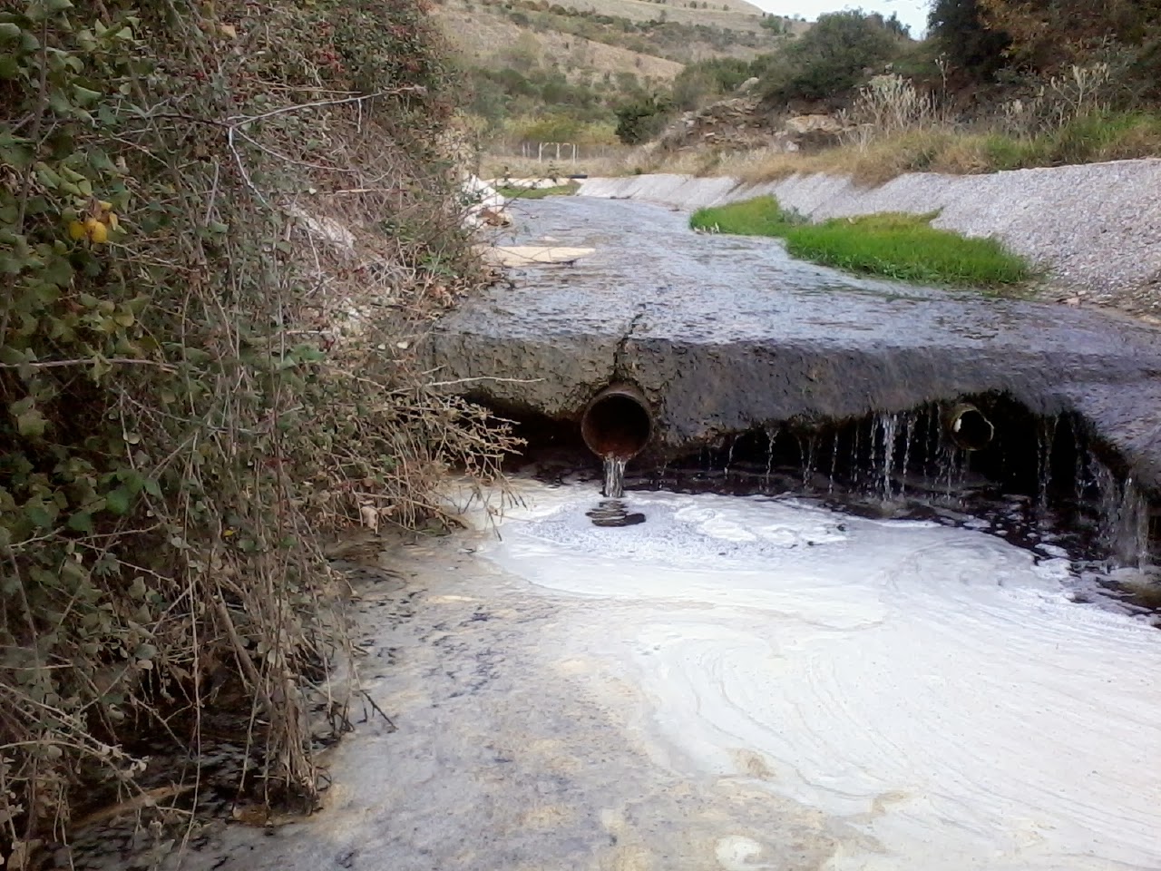 στο κάτω μέρος της χωματερής που εκβάλλει στο παρακείμενο ρέμα και από