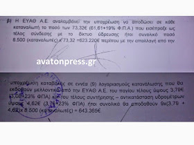 Σήμερα η ΕΥΑΘ ΑΕ φαίνεται να "πατάει" επάνω στην απόφαση του Εφετείου (ίσως έτσι να είναι νομικά καλυμμένη) και δεν επιστρέφει τα 73,32 ευρώ.