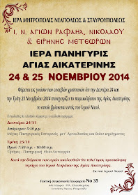 Πανήγυρις Αγίας Αικατερίνης στα Μετέωρα στις 24 & 25 Νοεμβρίου