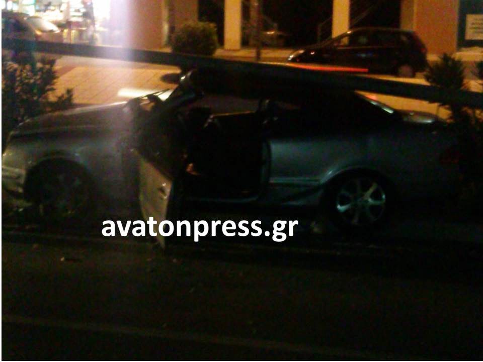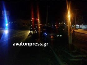Όχημα ΙΧ ανεβαίνοντας έφυγε απο τον δρόμο και έπεσε πάνω σε κολώνα της ΔΕΗ που βρίσκοταν στο διαχωριστικό διάζωμα του δρόμου.