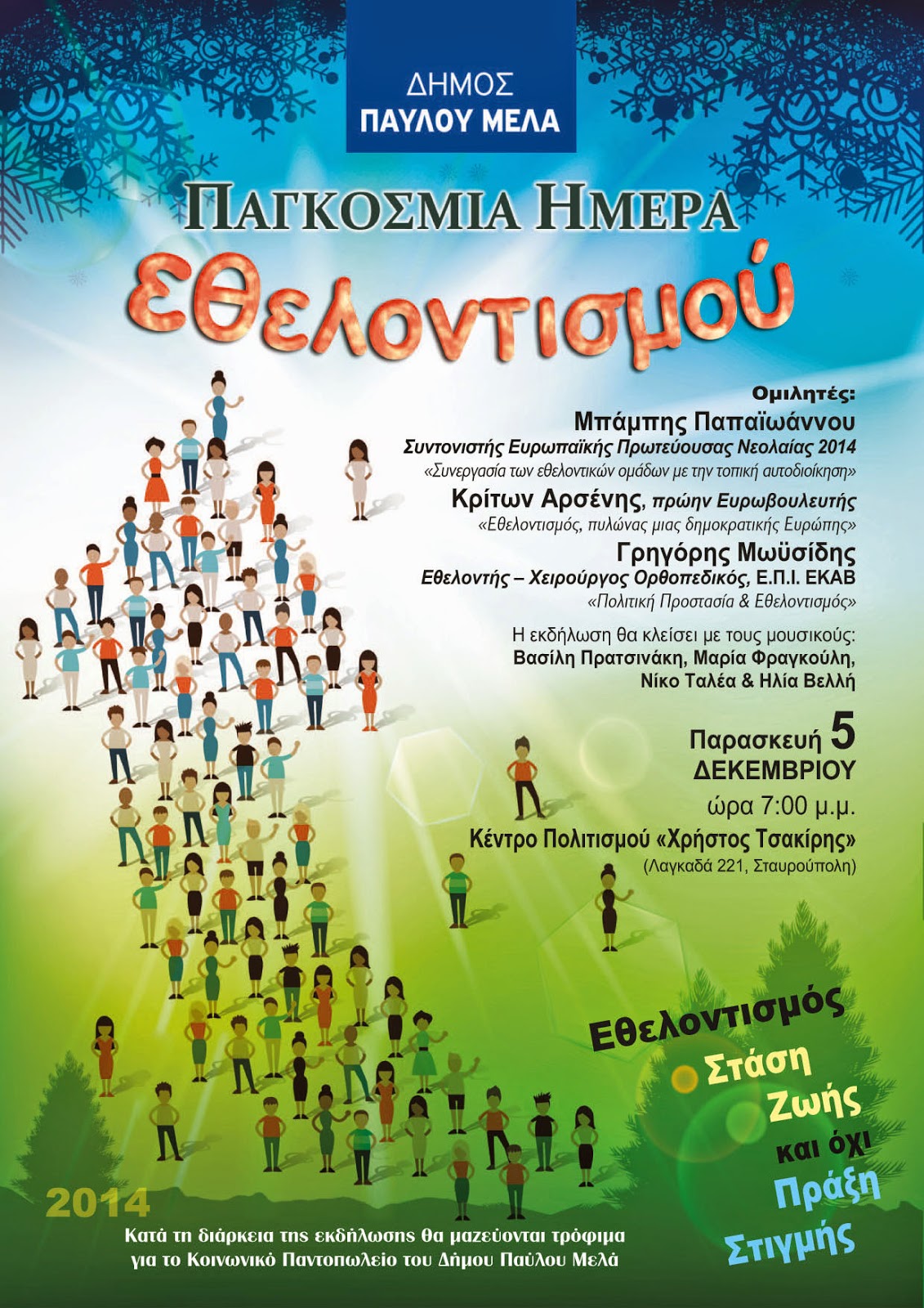 Δήμος Παύλου Μελά: Παγκόσμια Ημέρα Εθελοντισμού, εκδήλωση Παρασκευή 5 Δεκεμβρίου στις 7.00 μμ στο "Χρ. Τσακίρης"