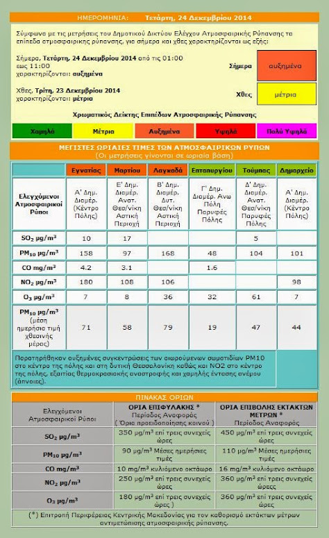 καταγράφηκαν στο σταθμό της Λαγκαδά ήταν στα 168 μg/ανά κυβικό μέτρο με όριο