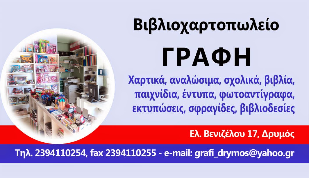 Γιορτινές ευχές από το βιβλιοχαρτοπωλείο ΓΡΑΦΗ στον Δρυμό