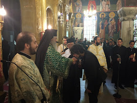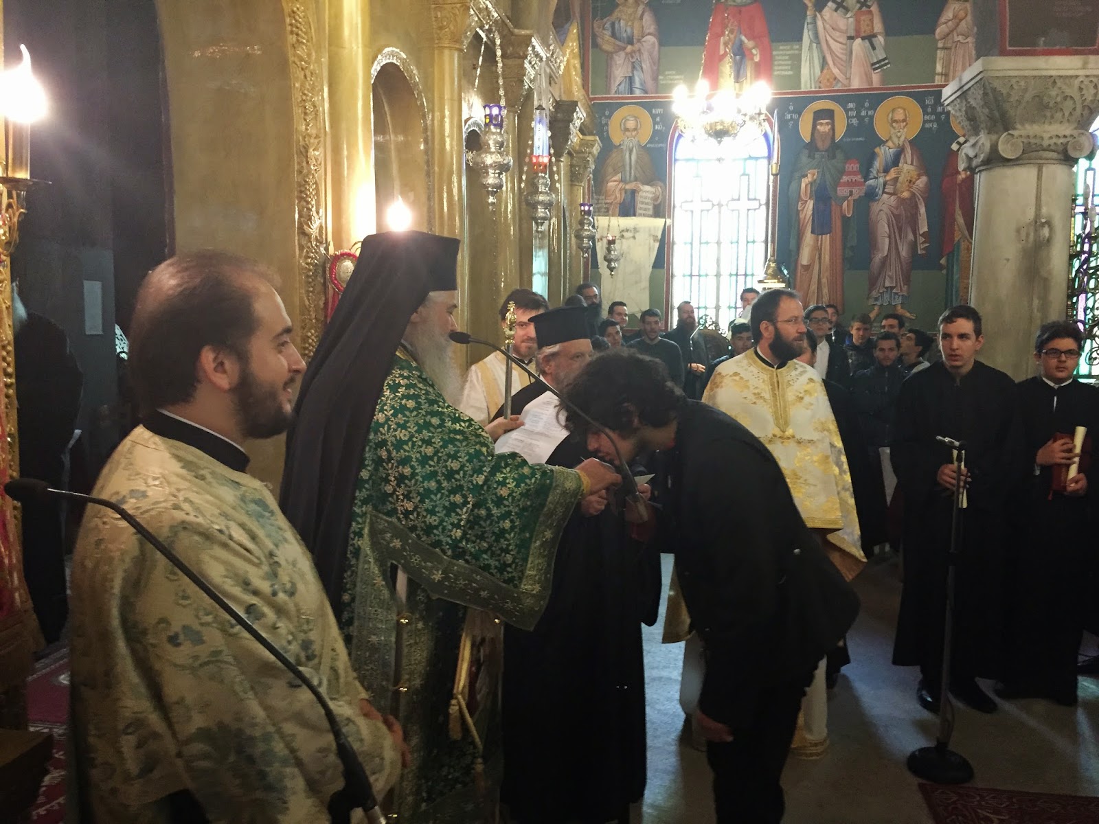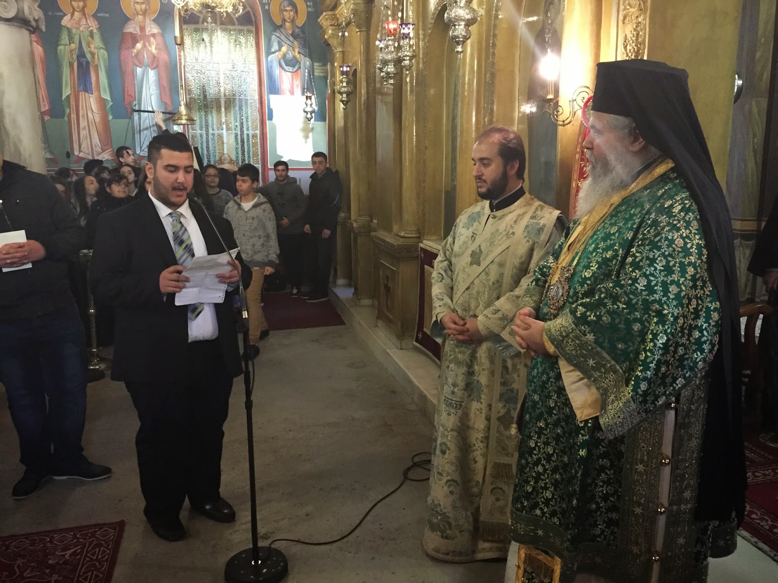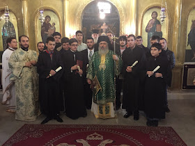 Κατά τη διάρκεια της Θείας Λειτουργίας ο Σεβασμιώτατος χειροθέτησε 4 μαθητές του Εκκλησιαστικού Γυμνασίου σε αναγνώστες .