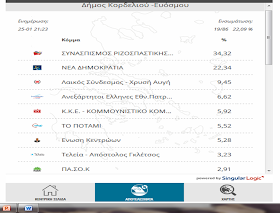 Τα ποσοστά των κομμάτων στο δήμο Κορδελιού - Ευόσμου (στο 22,09%)