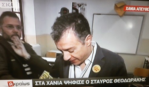 Με κόκκινο -βυσσινί μάλλον- παντελόνι και μαύρο μπουφανάκι, ψήφισε στα Χανιά, ο Σταύρος Θεοδωράκης, ο οποίος, προβληματίστηκε για το που θα κάνει...