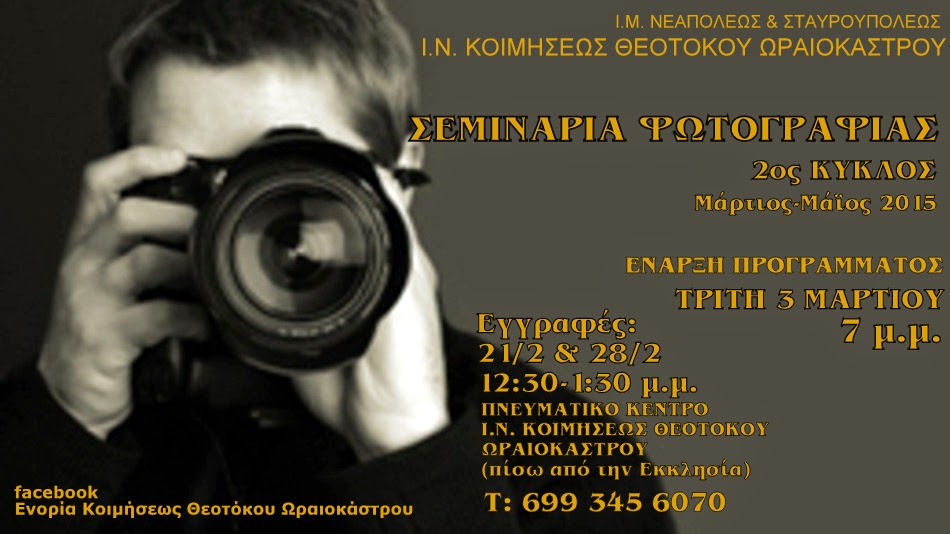 Σεμινάρια Φωτογραφίας - 2ος Κύκλος Μάρτιος - Μάιος 2015 στην Ενορία Κοιμήσεως Θεοτόκου Ωραιοκάστρου
