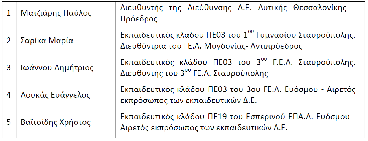 του νέου ΠΥΣΔΕ ΔΥΤ. ΘΕΣ/ΝΙΚΗΣ σύμφωνα με την 27922/19-12-2014 απόφαση του περιφερειακού διευθυντή Κ. Μακεδονίας,