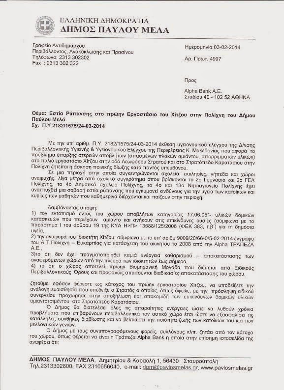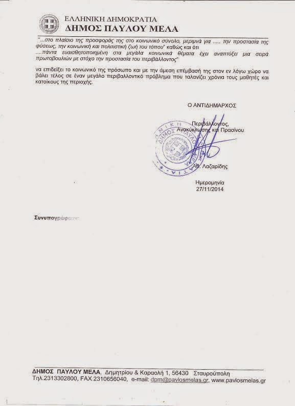 Παύλου Μελά απέστειλε το υπ' αριθμ. πρωτ.