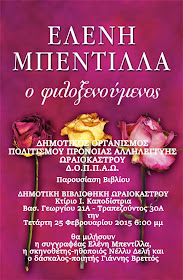 Δ.Ο.Π.Π.Α.Ω- Ωραιοκάστρο: Παρουσίαση βιβλίου “ο φιλοξενούμενος” της Ελένης Μπεντίλλα
