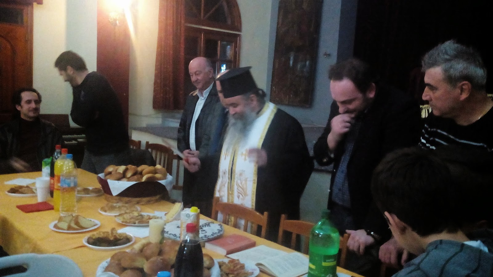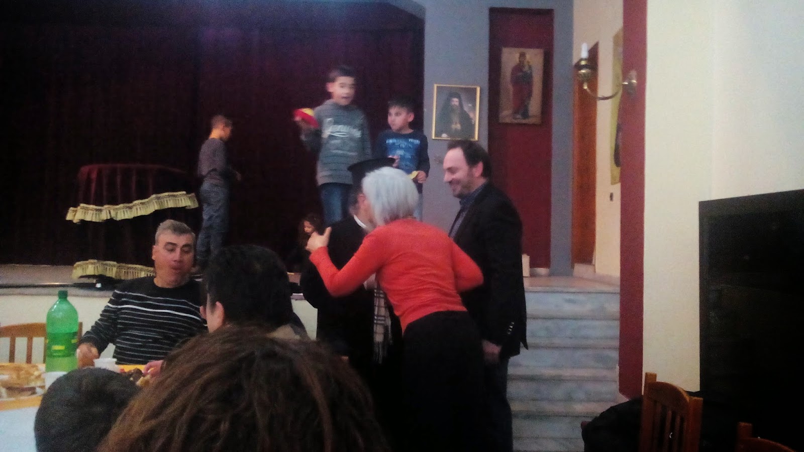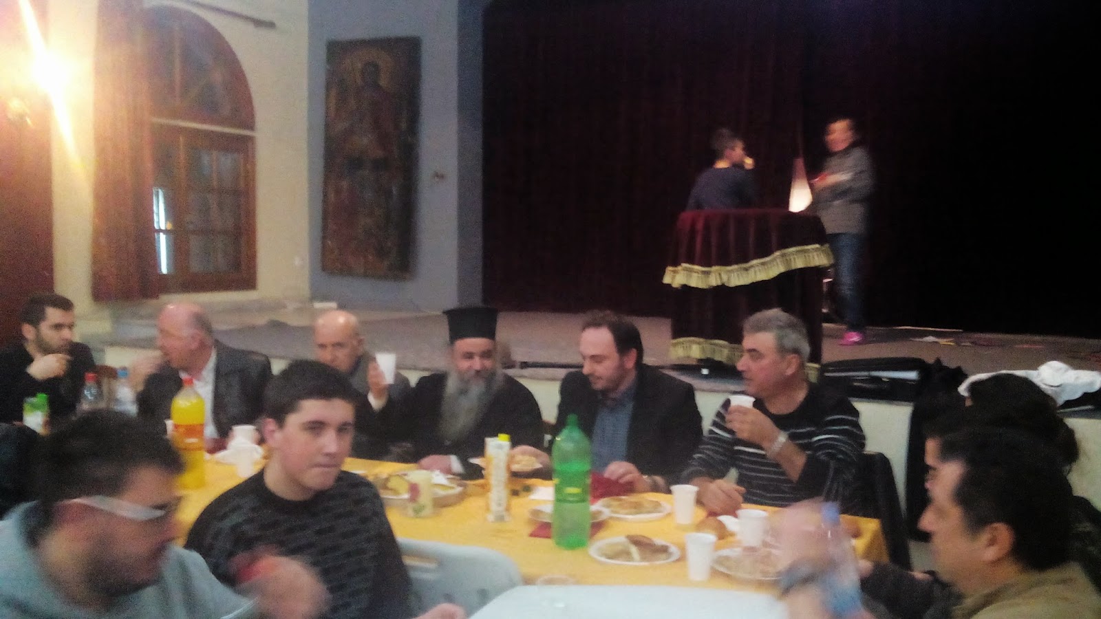 Κοπή Βασιλόπιτας χθές το απόγευμα στο Ενοριακό Κέντρο του Αγίου Αθανασίου. Ο π. Εμμανουήλ έκοψε βασιλόπιτα για όλους τους συνεργάτες της Ενορίας. Για τους εκπαιδευτικούς του Κοινωνικού Φροντιστηρίου, τα μέλη του Φιλοπτώχου, τους ιεροψάλτες, τις κυρίες που βοηθούν στους εράνους και στο συσσίτιο κ.ά.