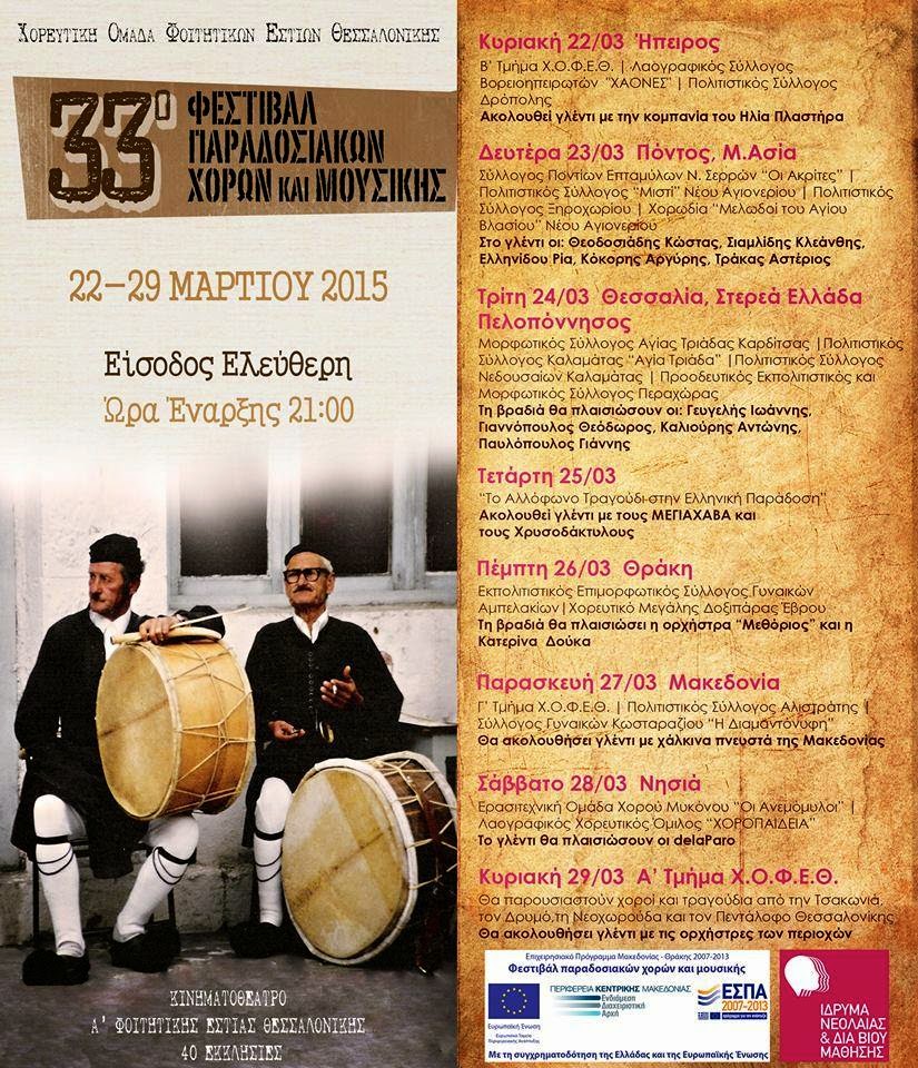 33ο Φεστιβάλ Παραδοσιακών Χορών και Μουσικής απο την Χορευτική Ομάδα Φοιτητικών Εστιών Θεσσαλονίκης