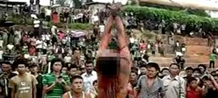Το οργισμένο πλήθος του χωριού Meluri στην δυτική Ινδία, κρέμασε και βασάνισε τον 18χρονο βιαστή, Ibo Cha, ο οποίος βίασε και δολοφόνησε 11χρονο κορίτσι.