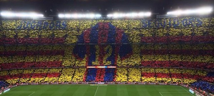 Οι οπαδοί της Μπαρτσελόνα σχημάτισαν μια τεράστια φανέλα της ομάδας με το νούμερο 12 και δίπλα από αυτό λέξεις με τις οποίες εξέφραζαν τη στήριξή τους στους ποδοσφαιριστές.