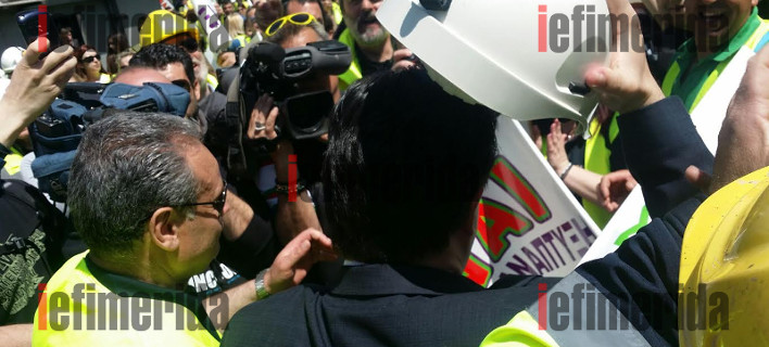 Με κράνος εργοταξίου στην πορεία των μεταλλωρύχων από τις Σκουριές ο Αδωνις Γεωργιάδης [φώτο]