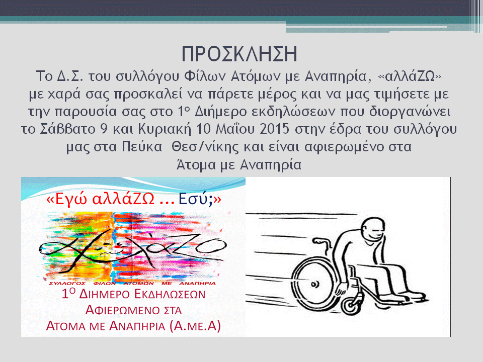 «Εγώ αλλάΖΩ …Εσύ;»1ο Διήμερο Εκδηλώσεων Αφιερωμένο στα Άτομα με Αναπηρία(9 & 10 Μαΐου 2015)
