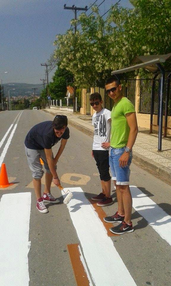 διαμορφώσουν την ξεβαμμένη διάβαση μπροστά από το σχολείο τους. Τα παιδιά του ΓΕΛ