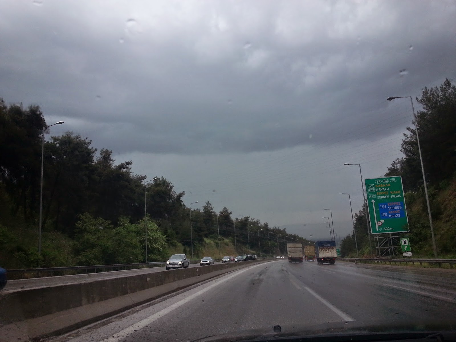 ΙΧ αυτοκίνητο έπεσε πάνω στο ενδιάμεσο διάζωμα, λόγω ολισθηρώτητας του οδοστρώματος, στην άνοδο προς Θεσσαλονίκη.