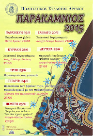 Πολιτιστικός σύλλογος Δρυμού: ΠΑΡΑΚΑΜΝΙΟΣ 2015, Παρασκευή 19/6 έως Πέμπτη 25/6/2015