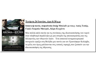 Σήμερα η δεύτερη Κινηματογραφική Προβολή που γίνεται