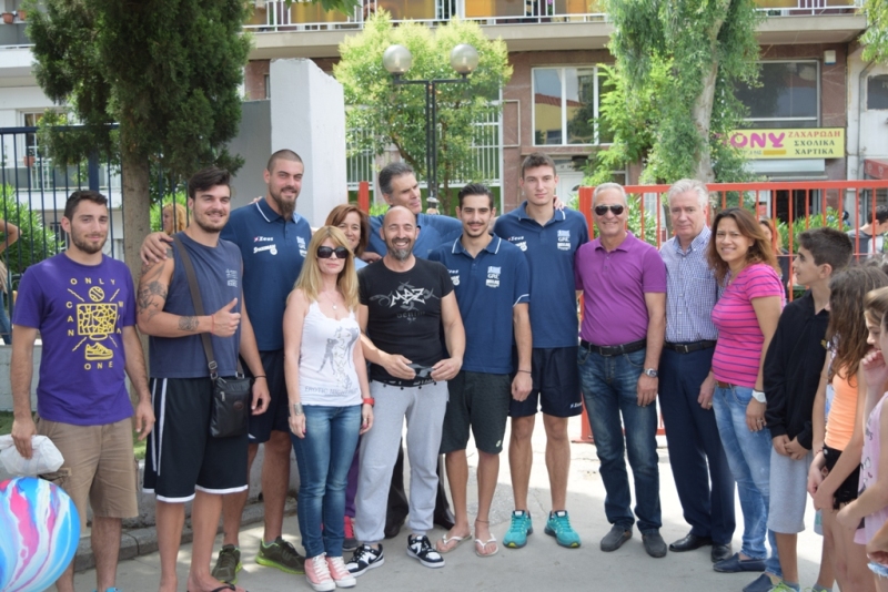 Οι παίκτες που επισκέφτηκαν τα σχολεία ήταν οι Κοκκινάκης Μενέλαος (Ολυμπιακός), Κουμεντάκης Ραφαήλ (Ραβένα Ιταλίας), Αγγελόπουλος Νίκος (Ανόρθωση Κύπρος), Πρωτοψάλτης Αθανάσιος (Παναθηναικός), Ταμπουρατζής Κων/νος (Α.Ο. Κηφησιάς), Δαλακούρας Ανέστης (Εθνικός Αλεξανδρούπολης) και Φράγκος Ανδρέας (Ιράν). Την αποστολή συνόδευσαν μέλη των Δ.Σ. από την ομάδα του Πήγασου και τον ΕΟΣ, ενώ τα σχολεία στα οποία πραγματοποιήθηκε επίσκεψη ήταν το 16ο δημοτικό σχολείο και το 3ο  δημοτικό σχολείο στη Δ.Ε. Σταυρούπολης, το 1ο δημοτικό σχολείο και το 14ο δημοτικό σχολείο στη Δ.Ε. Πολίχνης και το 3ο δημοτικό σχολείο στη Δ.Ε. Ευκαρπίας. Οι μαθητές ευχήθηκαν καλή επιτυχία στους παίκτες της Εθνικής Ομάδας ενόψει της δύσκολης συνέχειας και τους υποσχέθηκαν ότι θα τους υποστηρίζουν σε κάθε τους αγώνα. Από τη μεριά τους οι παίκτες ευχαρίστησαν τα μικρά παιδιά για την υποδοχή που τους επιφύλαξαν, ενώ δεν παρέλειψαν να δείξουν και αυτοί τη χαρά τους για την αποθέωση που γνώρισαν σε κάθε σχολείο που επισκέφθηκαν.