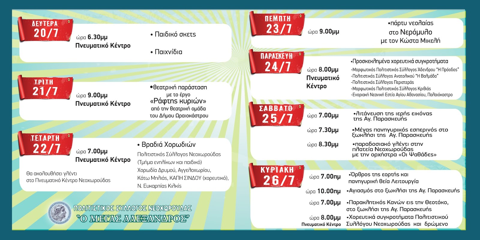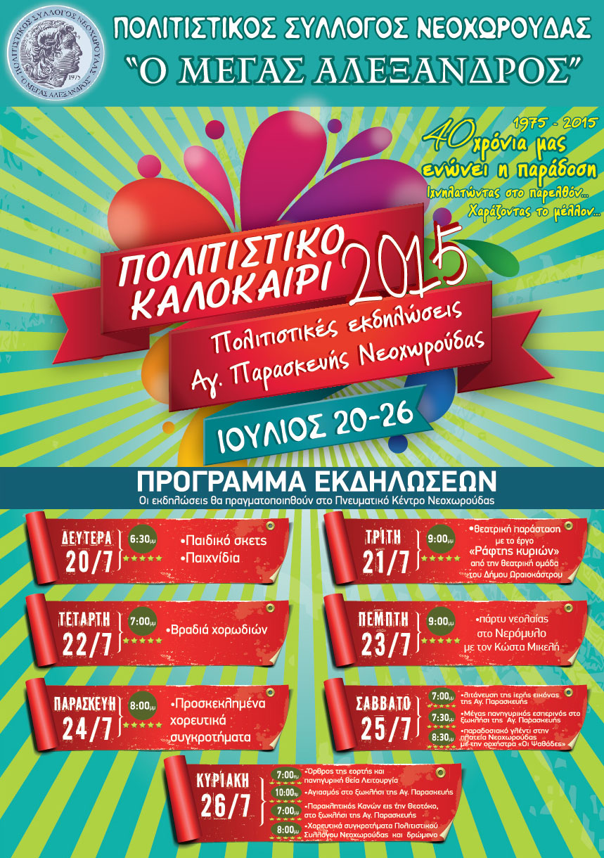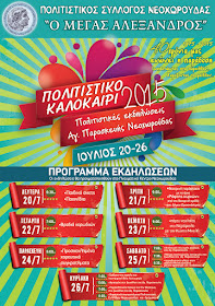 “Πολιτιστικό Καλοκαίρι 2015” απο τον Πολιτιστικό Σύλλογο Ο Μέγας Αλέξανδρος Νεοχωρούδας