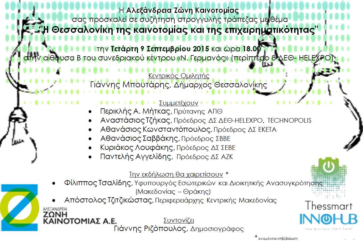 Αλεξάνδρεια Ζώνη Καινοτομίας (ΑΖΚ) την Τετάρτη 9 Σεπτεμβρίου 2015, στις 6 το