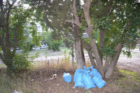 Σακκούλες σκουπιδιών είναι συγκεντρωμένες σε συγκεκριμένα σημεία του δάσους,