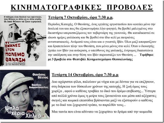 οργανώνει μέσα στον Οκτώβρη τρεις κινηματογραφικές