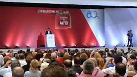 Θερμή υποδοχή και χειροκροτήματα κατά την είσοδο του Α. Τσίπρα στο Βελλίδειο.