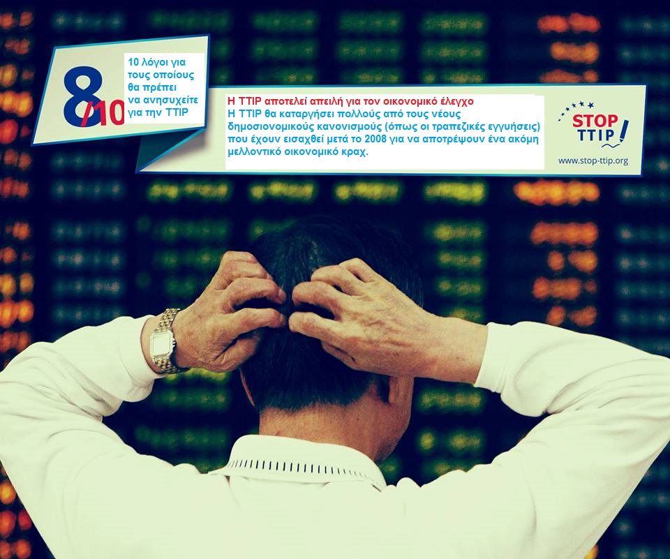8/10 - Η ΤΤΙΡ αποτελεί απειλή για τον οικονομικό έλεγχο. Η ΤΤΙΡ θα καταργήσει πολλούς από τους νέους δημοσιονομικούς κανονισμούς (όπως οι τραπεζικές εγγυήσεις) που έχουν εισαχθεί μετά το 2008 για να αποτρέψουν ένα ακόμη μελλοντικό οικονομικό κραχ.