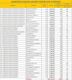 αντιστοιχεί σε κάθε σχολείο, ο αριθμός μαθητών του σχολείου και η αύξηση ή