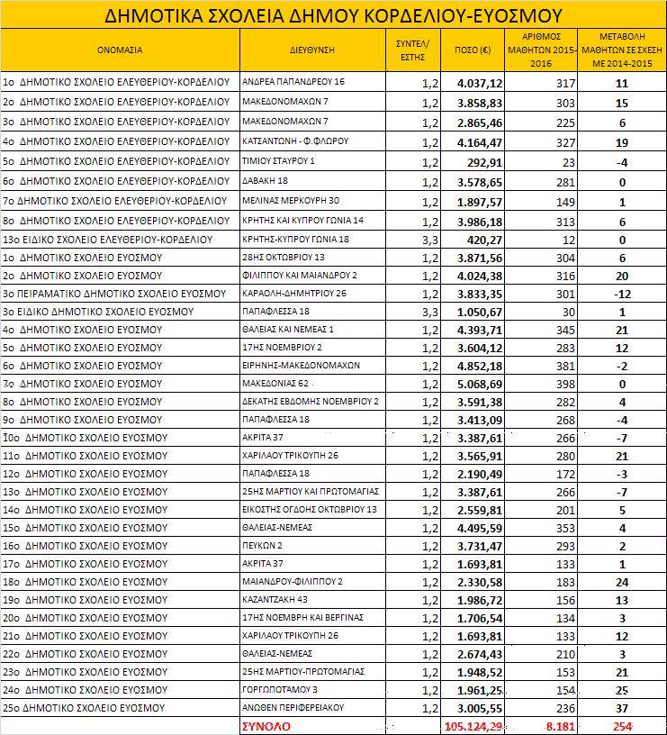 του 2015 για τις λειτουργικές δαπάνες των σχολείων (ΔΕΗ, ΟΤΕ, ΕΥΑΘ,