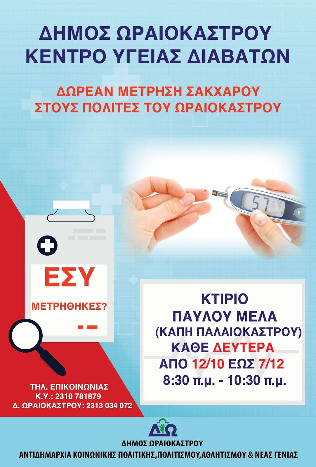 Δωρεάν μετρήσεις σακχάρου στους πολίτες του δήμου Ωραιοκάστρου