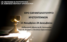διάρκεια της Σαρακοστής των Χριστουγένων ειναι μιά αξιόλογη λειτουργική και
