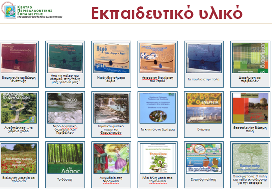(βιβλία) για την υποστήριξη της περιβαλλοντικής εκπαίδευσης στο σχολείο. Το ΚΠΕ