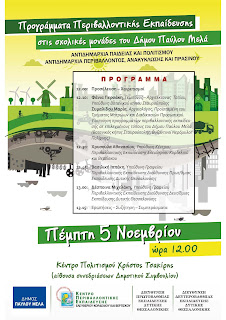 Προγράμματα Περιβαλλοντικής Εκπαίδευσης στις σχολικές μονάδες του Δήμου Παύλου Μελά