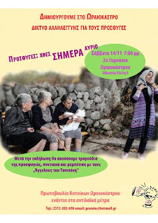Η Πρωτοβουλία Κατοίκων Ωραιοκάστρου, σας καλεί σε μια ακόμα εκδήλωση, το Σάββατο 14 Νοεμβρίου, ώρα 7.00 μ.μ. στο χώρο του 2ου Γυμνασίου Ωραιοκάστρου, με θέμα:‘’Πρόσφυγες, χθες, σήμερα, αύριο.’’