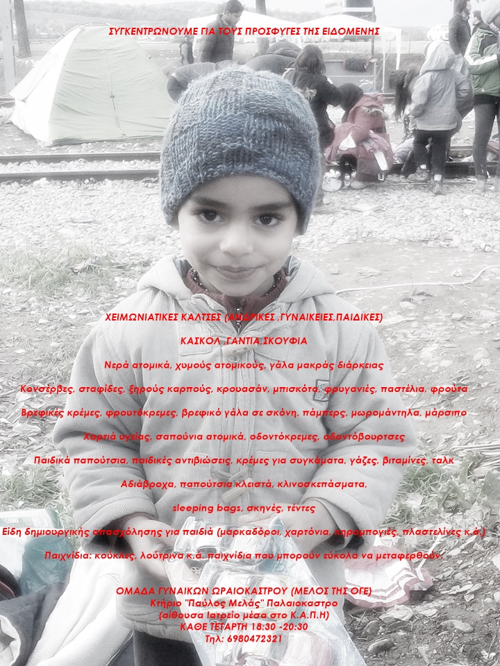 Ομάδα Γυναικών Ωραιοκάστρου (μέλος της ΟΓΕ): Συγκεντρώνουμε για τους πρόσφυγες