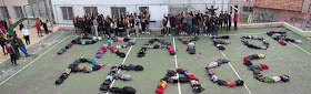 Οι μαθητές σχημάτισαν με τα σακίδιά τους την φράση PRAY FOR PEACE στην αυλή του σχολείου!!!!