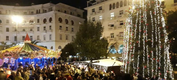Με πυροτεχνήματα και το Last Christmas των Wham! φωταγωγήθηκε το Χριστουγεννιάτικο δέντρο της πλατείας Αριστοτέλους από τον δήμαρχο Θεσσαλονίκης Γιάννη Μπουτάρη.