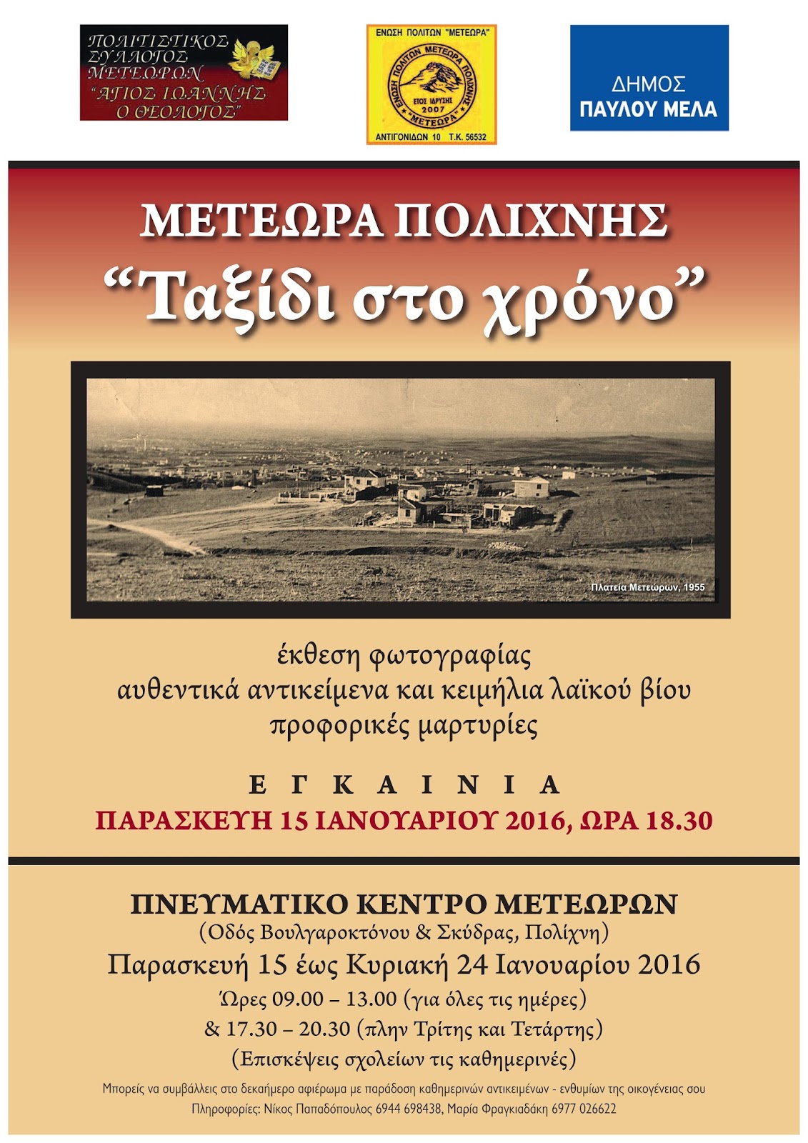 Μετέωρα Πολίχνης ΄΄Ταξίδι στο χρόνο΄΄ Δεκαήμερη έκθεση φωτογραφίας και συλλογή αντικειμένων τον Ιανουάριο