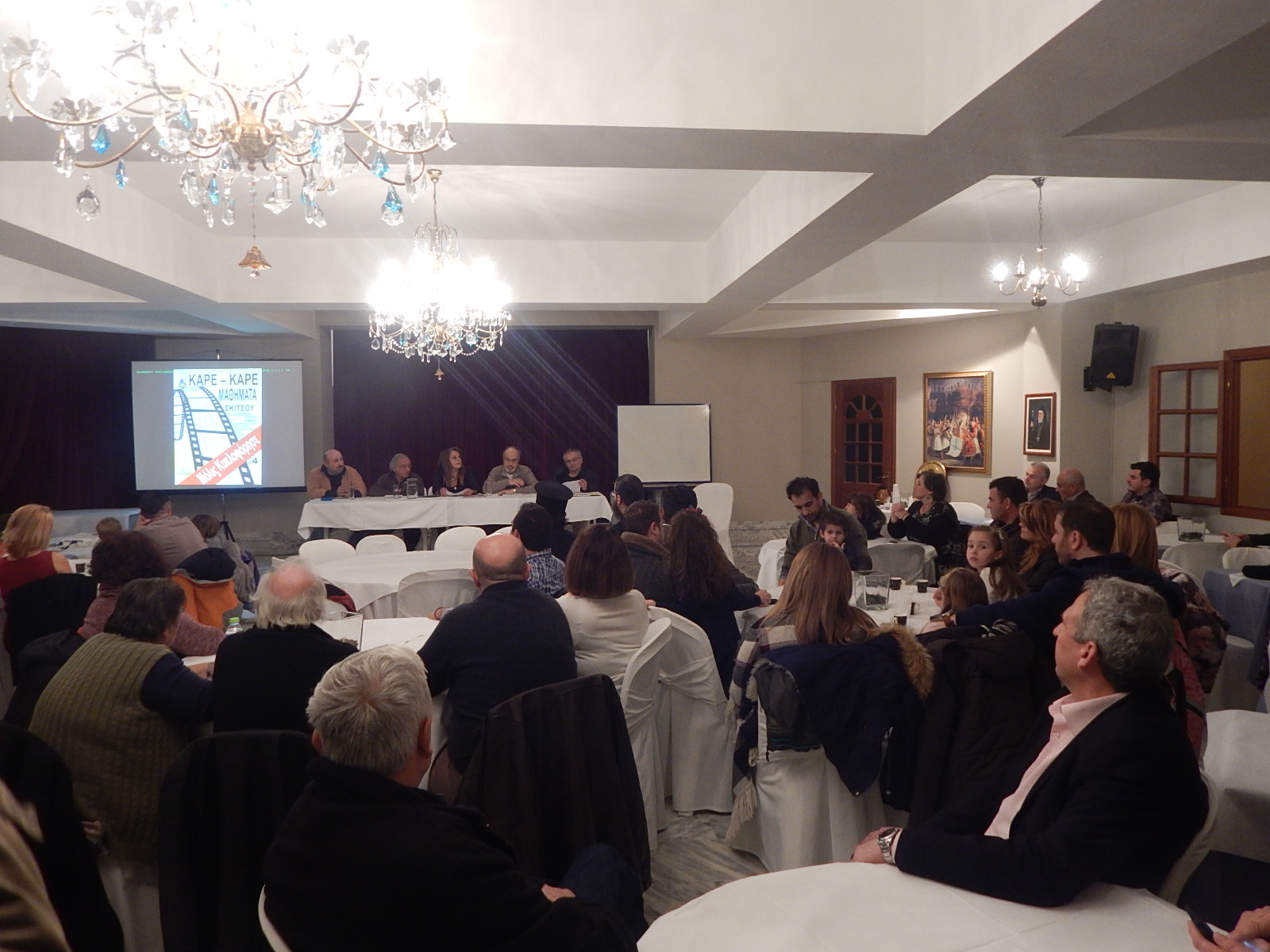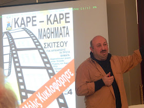 Μετά τους ομιλητές, ο σκιτσογράφος αφιέρωσε λίγη ώρα ώστε να δείξει στους παρευρισκόμενους τον τρόπο με τον οποίο πραγματοποιεί τα σκίτσα του, την φιλοσοφία του, με την βοήθεια μερικών μαθητών του.