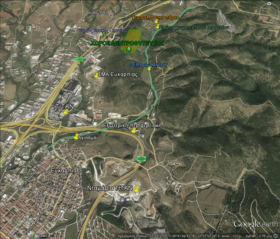 Η περιοχή Δεντροφύτευσης είναι η παρακάτω (εικόνα από Google Earth):