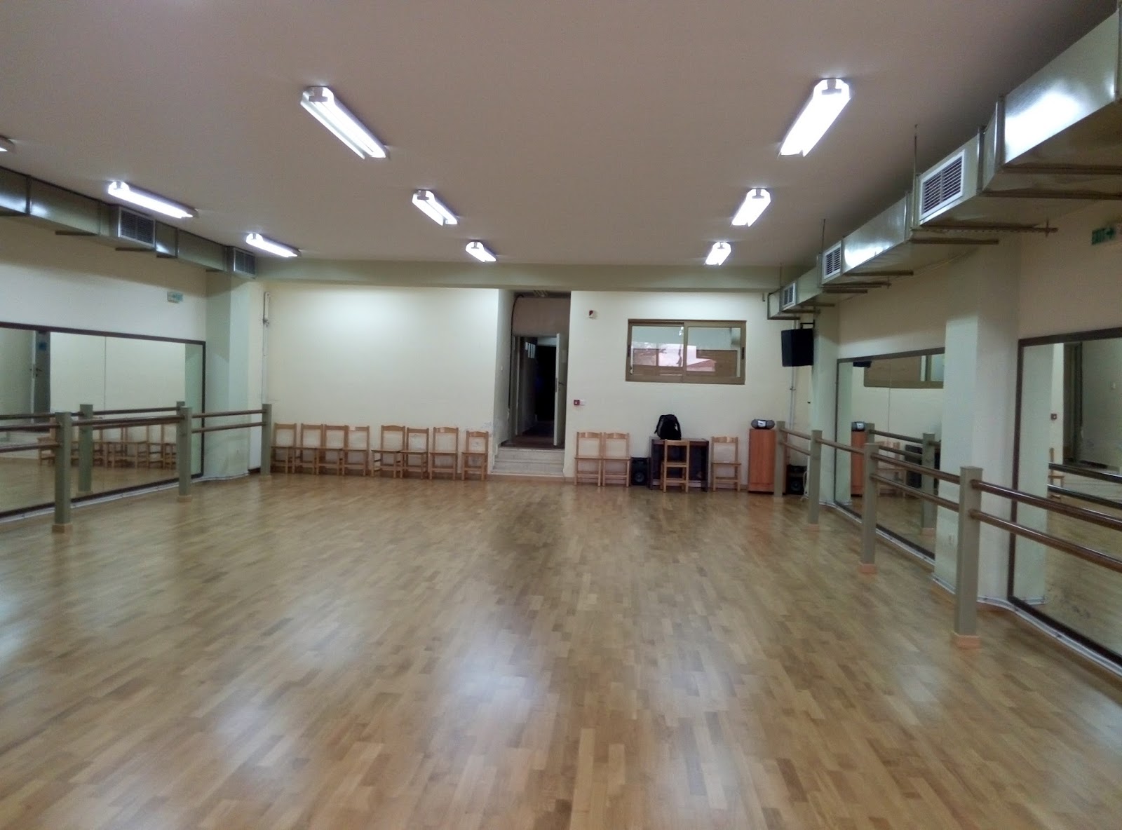 Στο πνευματικό κέντρο Μετεώρων και στον υπόγειο χώρο εμβαδού 125 τ.μ. τοποθετήθηκε ξύλινο δάπεδο (δρύινο παρκέ) πάχους 14mm. Για να αποφευχθούν τα προβλήματα υγρασίας πραγματοποιήθηκε επάλειψη του τσιμεντένιου πατώματος με υγρομονωτικό υλικό και στη συνέχεια τοποθετήθηκε ελαστικό δάπεδο πάχους 3mm ως αντικραδασμική προστασία και επί αυτού τοποθετήθηκε το ξύλινο πάτωμα προσφέροντας δυνατότητες για άθληση και για μαθήματα χορού.