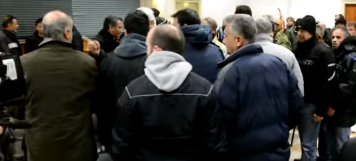 Περίπου 50 αγρότες εισέβαλλαν στη σύσκεψη, φωνάζοντας «αγρότη πολέμα, δε θα σου μείνει αίμα», ζητώντας από τους βουλευτές να πάρουν θέση για το ασφαλιστικό.